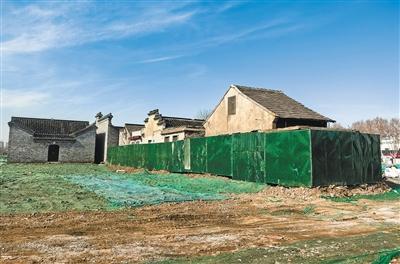 从一条小路走进正在施工的仪征市南门大码头保护开发项目,目之所及是大片覆盖在泥土、杂草和砖石上的绿色防尘网。在工地中心,新建起三四十栋青砖灰瓦的建筑,马头墙、硬山顶等构造显示出明清时期淮扬地区民居建筑风格。